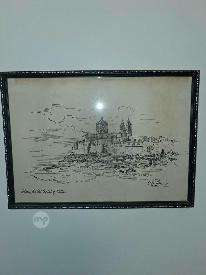 Vintage Maltese Ink Drawing - Mdina, Old Capital of Malta (V.Camilleri)