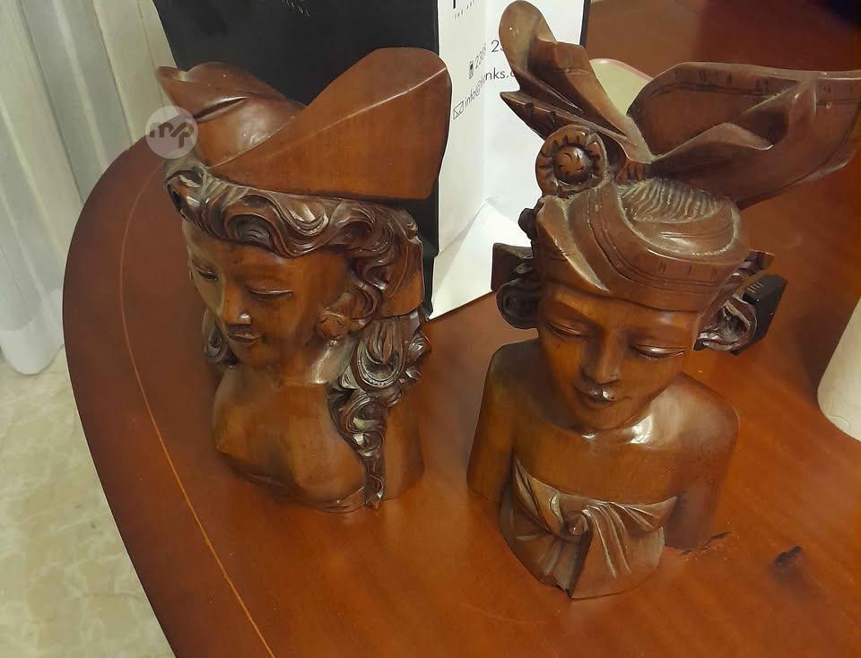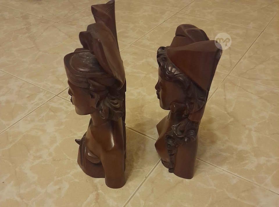 Pair of vintage hand-carved wooden female bust sculptures mid-20th century, Arthur deco/Mid-Century style. Solid Hardwood with original patina. European origin. Excellent condition for age. Ideal for interior decor, collectors or boutique spaces