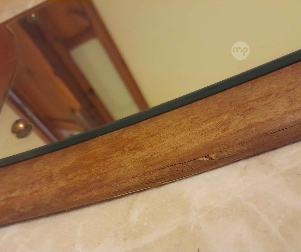 Arched Hardwood Mirror, with a few small blemishes and small crack on the side of the wooded frame.