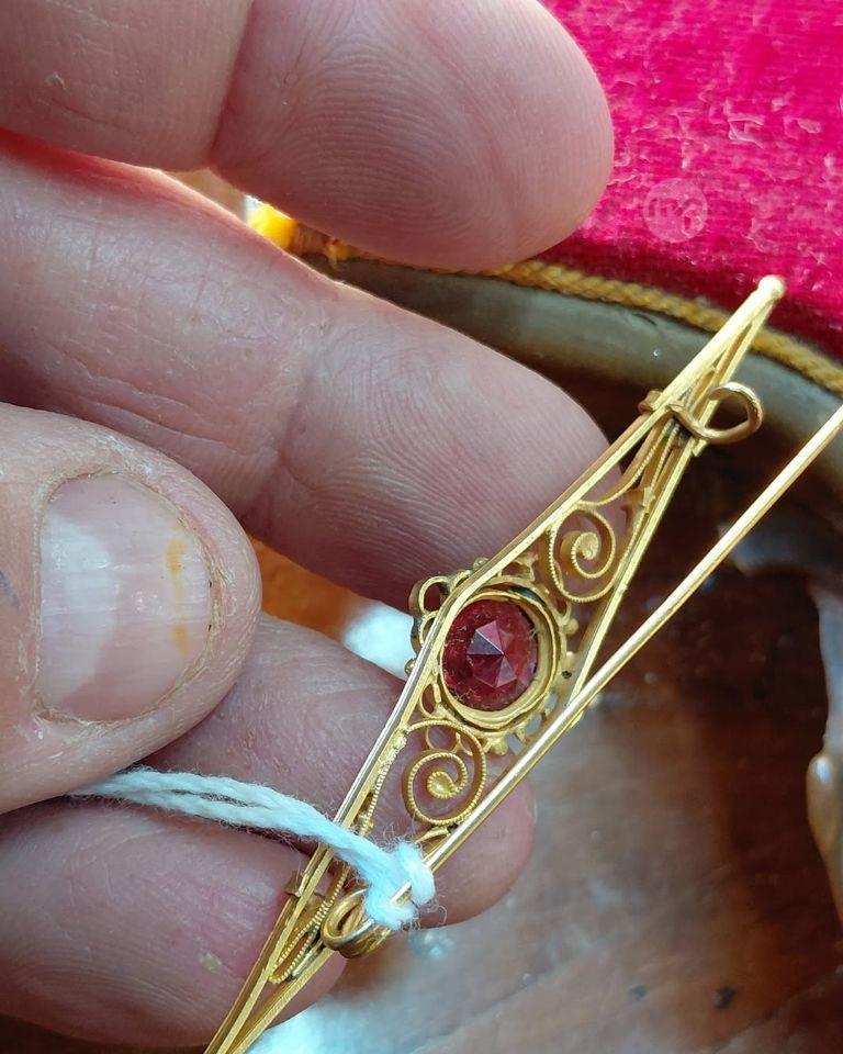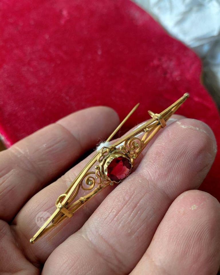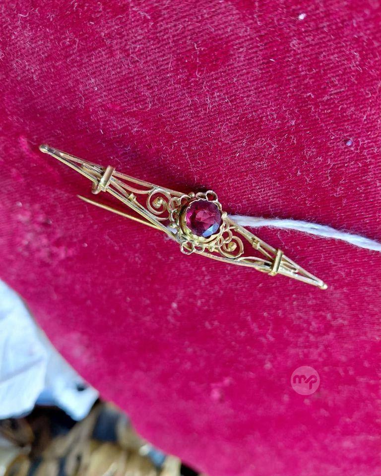 An 18crt GOLD Brooch With faux stone Weighs 5.4 grams Price of 500 euros.
