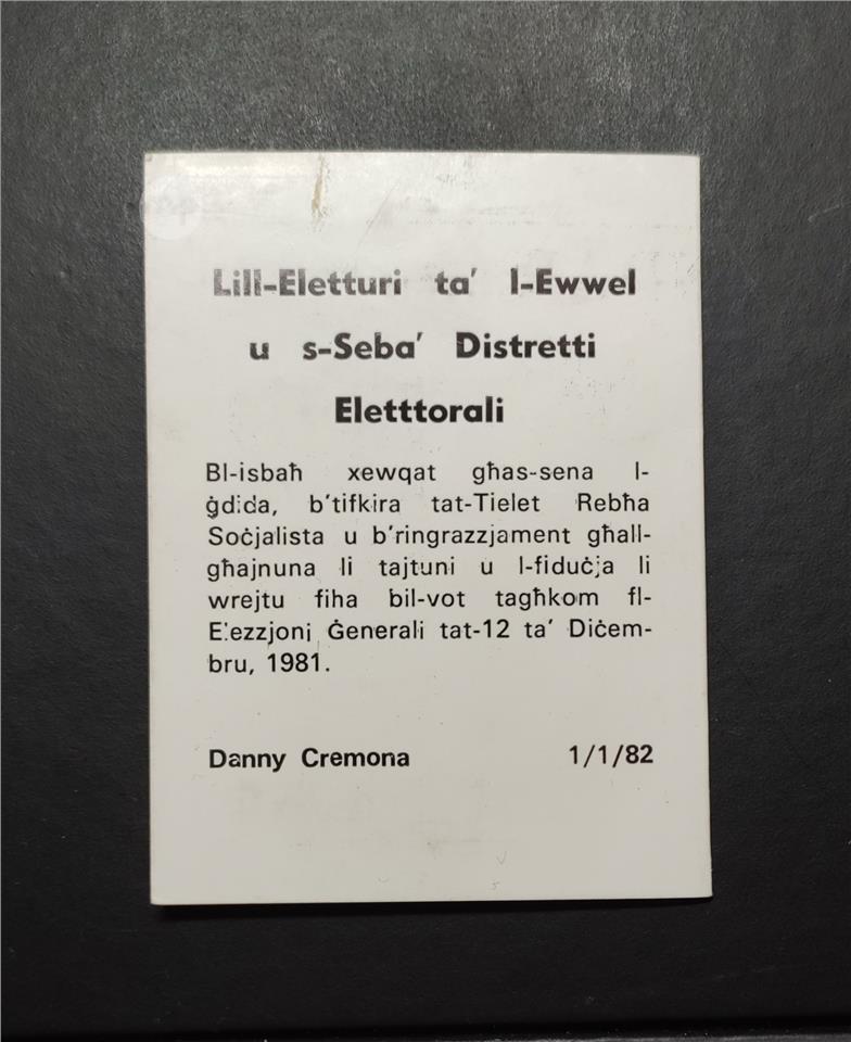 Kalendarju zghir ghas-sena 1982 mill-ex Ministru Laburista Danny Cremona