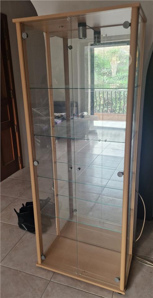 There's light in the ceiling of the cabinet, which connects to a normal wall socket via a cord in the back.