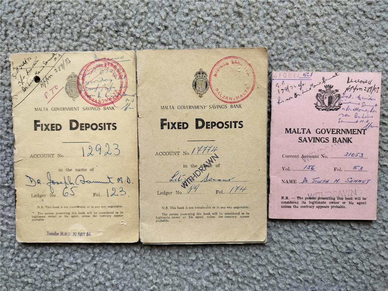 Vintage 3 X Malta Government Saving Books