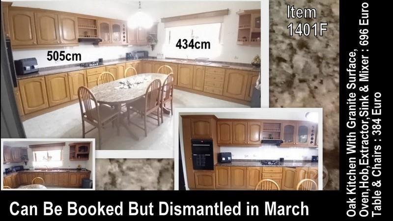 ( 1401F ) SOLID OAK KITCHEN WITH GRANITE SURFACE & APPLIANCES ( CAN BE BOOKED BUT DISMANTLED IN MARCH )