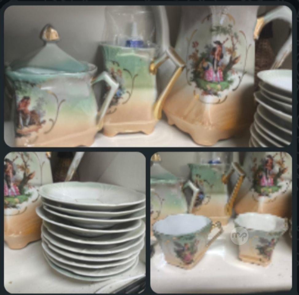 Espresso set, ten cups and saucers, milk and sugar pots plus tea pot €100