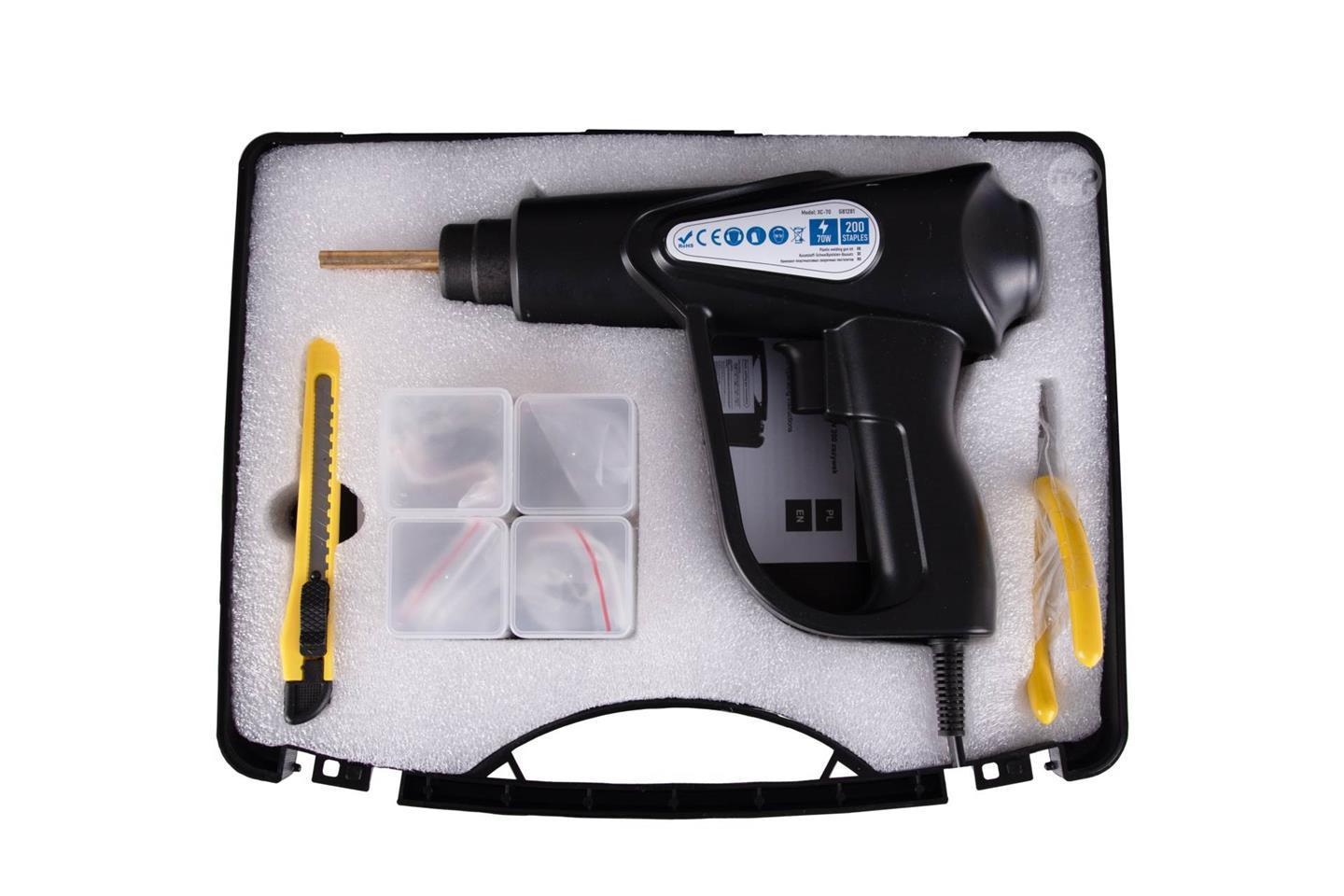 Modern plastic welder-stapler with a power of 70W, equipped with 200 staples of various types. This tool will make your repair or project work quick, precise, and highly efficient.