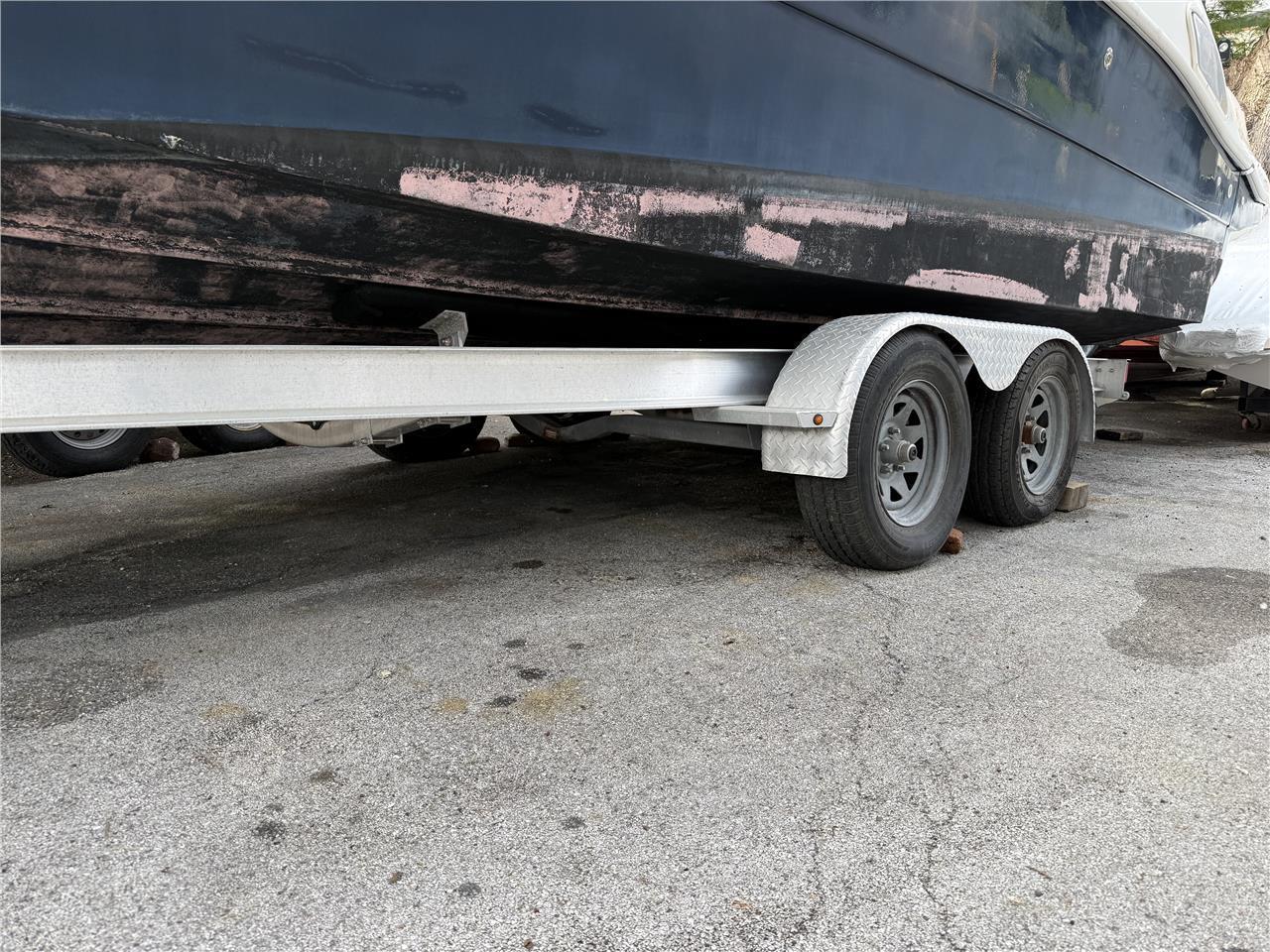 Aluminum trailer H, never used in the water and used for boat storage, complete with a fully functional waterproof LED electrical system, disc brakes, oil-filled hubs, winch, and spare wheel.