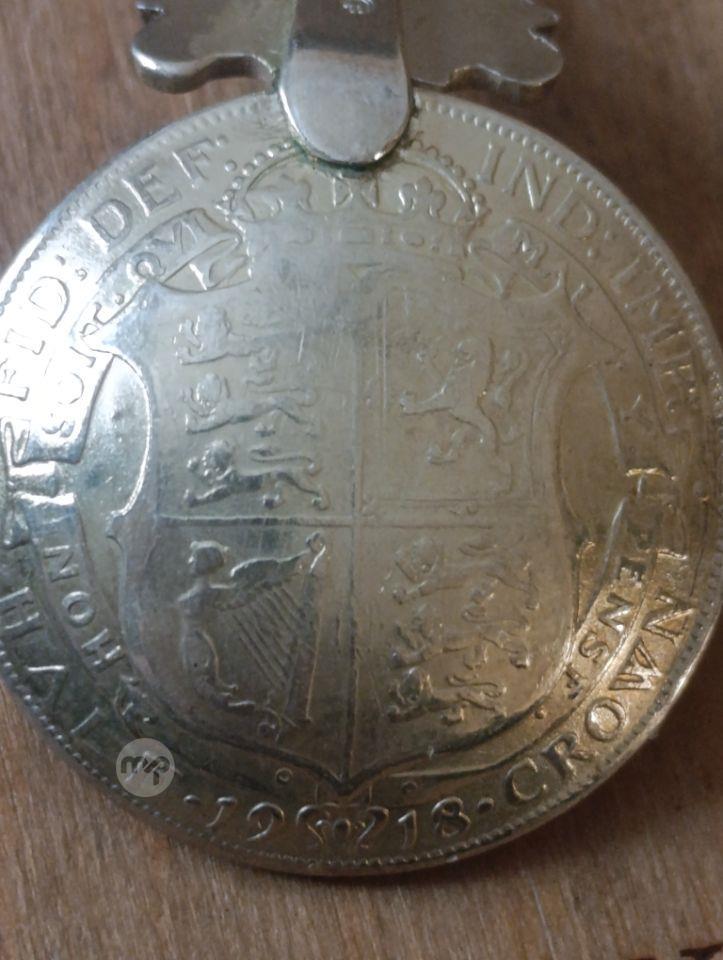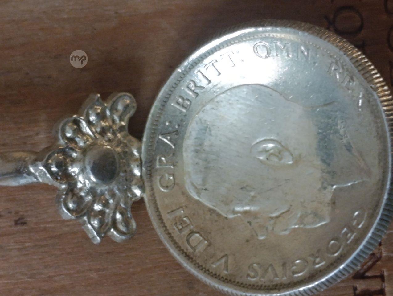 George V 1918 coin with twisted silver shaft and silver Maltese cross on top