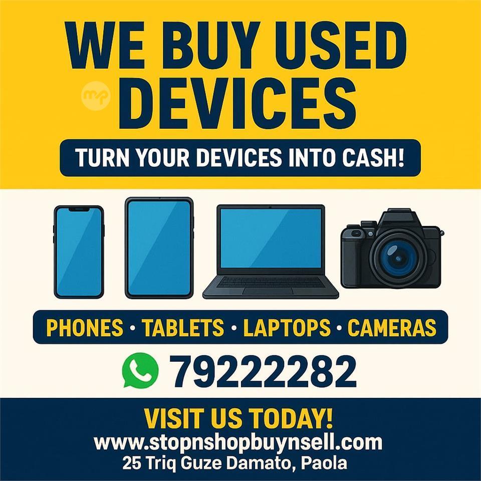 Looking to buy or sell used electronics? We deal in phones, laptops, cameras, iPads, MacBooks, PCs, and more! Whether you're upgrading your gadgets or looking for a great deal, we're here to help. Message us on WhatsApp +356 79222282 with what you're interested in buying or selling, and we’ll assist you every step of the way. Fast, reliable, and hassle-free!