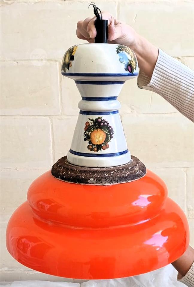 Vintage 1970s Space Age Lamp– Orange Cased Glass & Ceramic