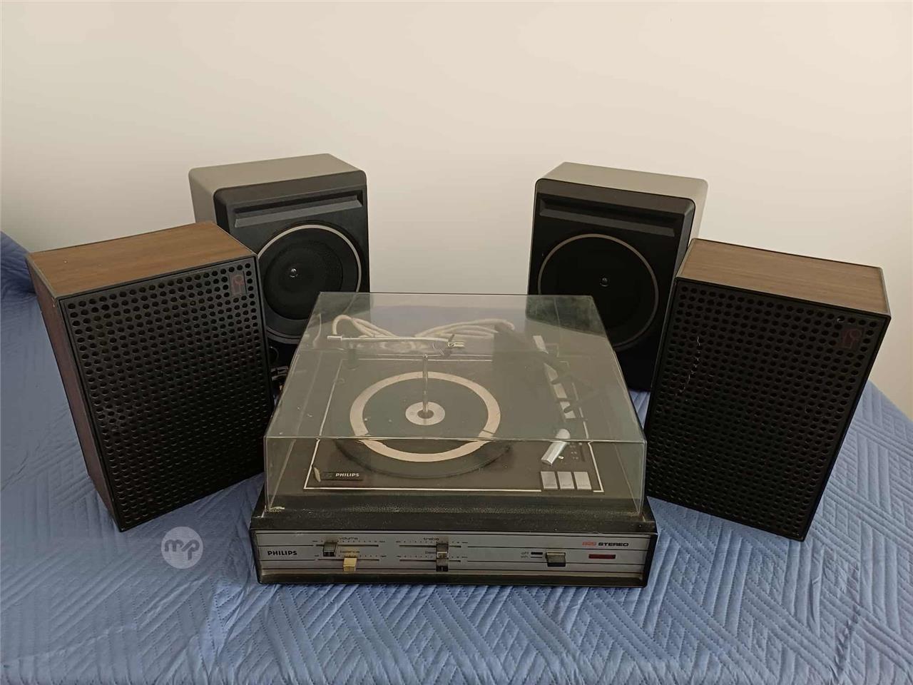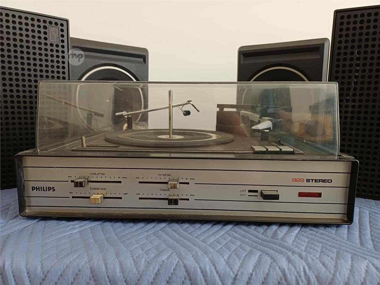 Philips Mod. 829 Stereo record player and changer. Multiple playing speeds. Year 1973 / 1974 – Vintage, with accessories. In working condition. Plus 4 speakers. Eur 250 for stereo and speakers. Call Mob. 7942 9280.