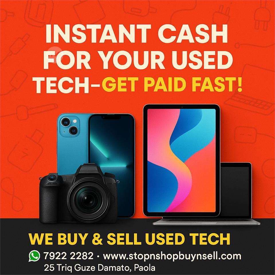 Looking to buy or sell used electronics? We deal in phones, laptops, cameras, iPads, MacBooks, PCs, and more! Whether you're upgrading your gadgets or looking for a great deal, we're here to help. Message us on WhatsApp +356 79222282 with what you're interested in buying or selling, and we’ll assist you every step of the way. Fast, reliable, and hassle-free!