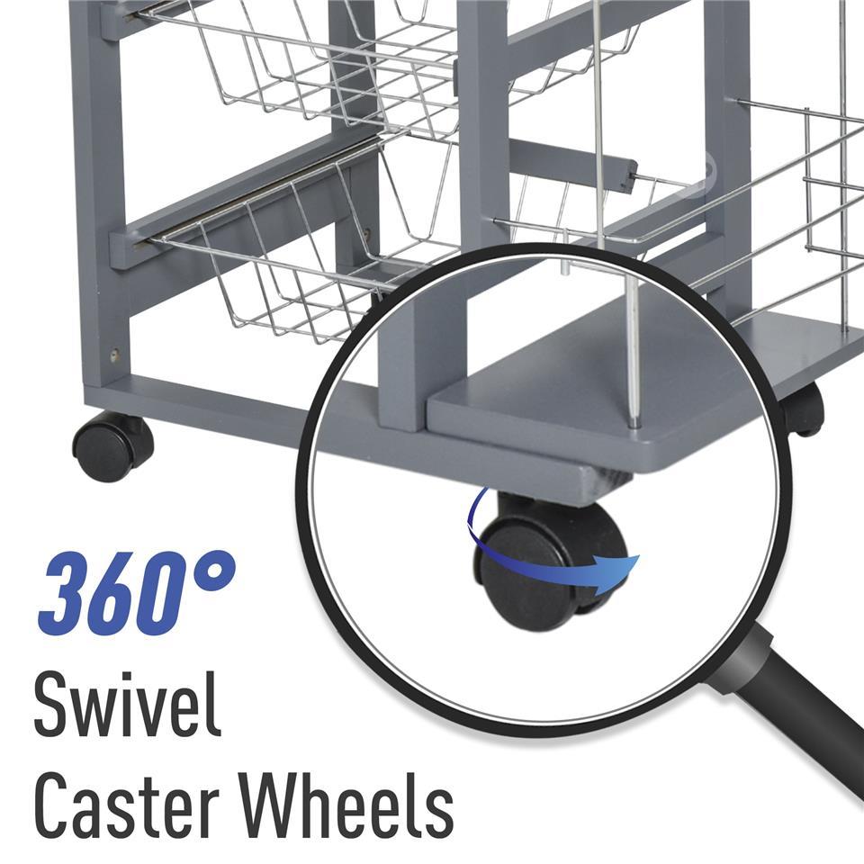 kitchen trolley in dark Grey with 1 drawer and 4 metal baskets