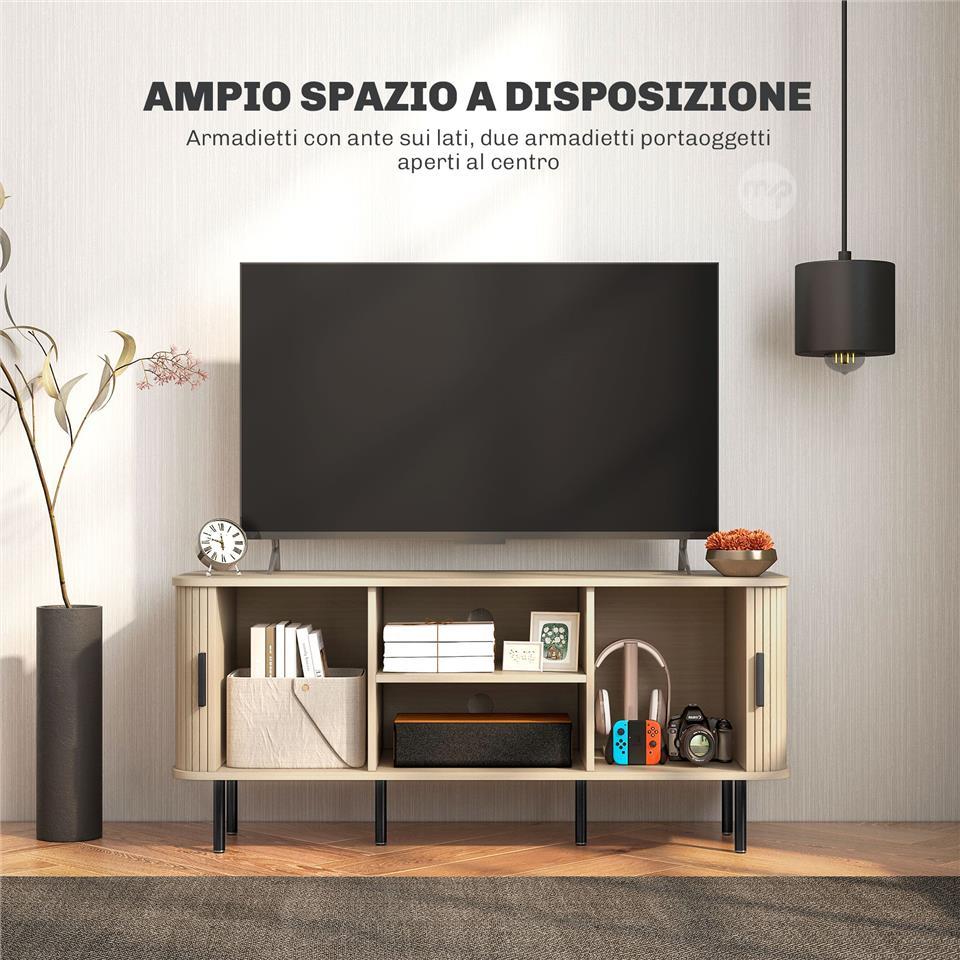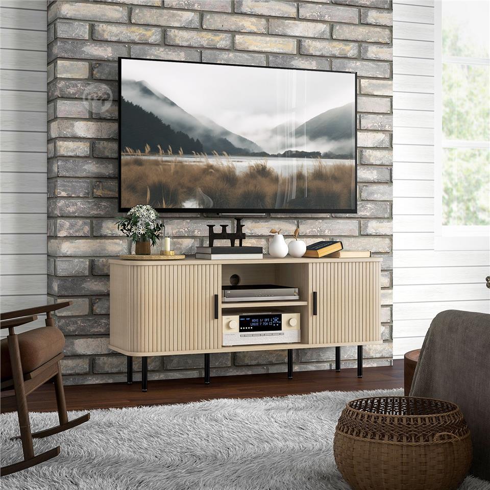 55" TV Cabinet with 2 Cabinets and 2 Shelves in Wood and Steel, 120x40x55 cm, Black and Oak