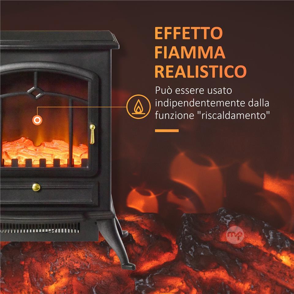 Electric Fireplace Floor Standing with Flame Effect Power 1000W /2000W in ABS and Glass 45×28×54cm Black