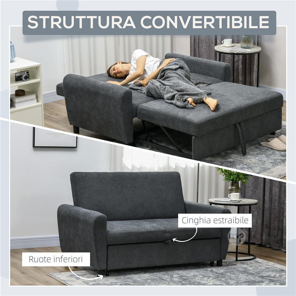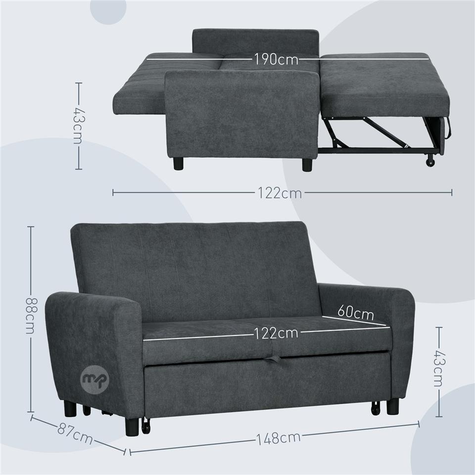 Sofa Bed with 3-Level Adjustable Backrest, in Velvet Effect Fabric, 148x87x88 cm, Grey