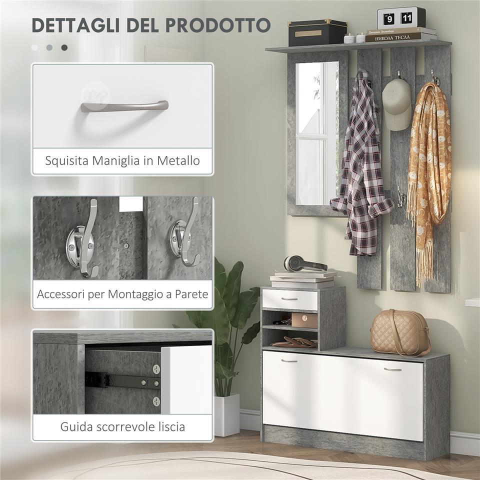 TWENTY | Entryway Furniture Set 3 in 1 with 6 Hooks Coat Rack, Shoe Cabinet with Drawer and Mirror, Grey