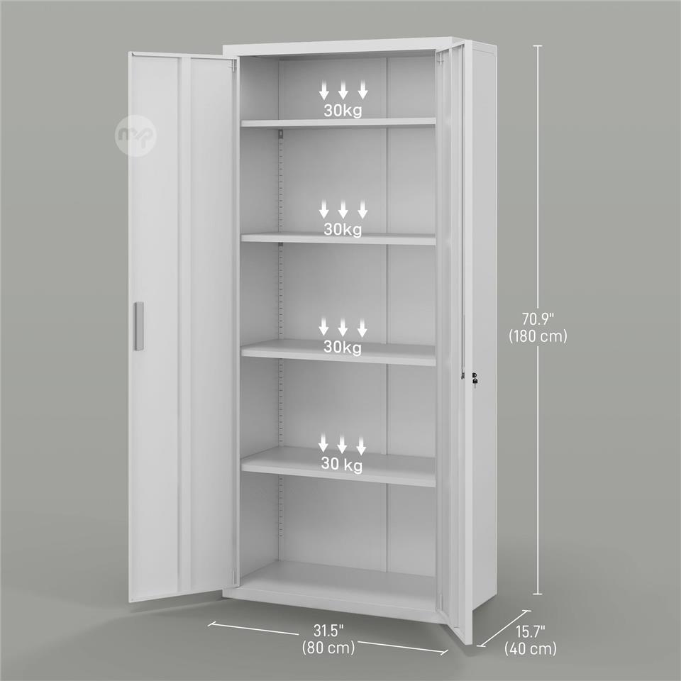 Office Cabinet with 4 Adjustable Shelves, Steel, 80x40x180 cm, White