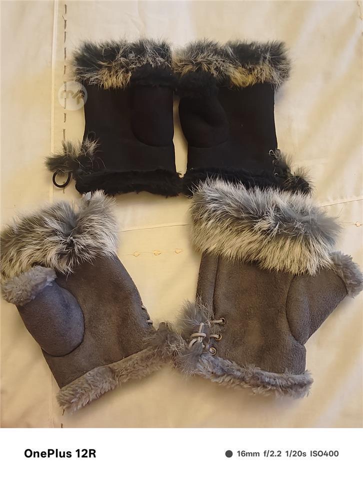 Beautiful warm gloves with fur and hand and thumb warmers.