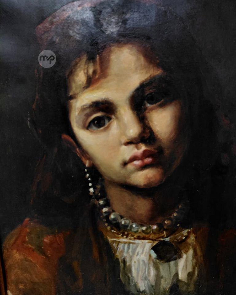 Oil on canvas Framed painting Showing a young woman