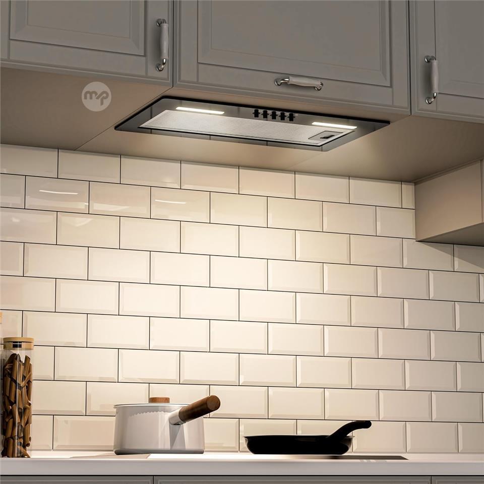 EASY TO USE WITH 3 SPEEDS: This cooker hood has a piano switch for easy control of the three fan speeds and LED lighting. This allows the hood to be optimally adapted to different cooking needs and provides bright lighting of the kitchen area. Its minimalist design combines modern aesthetics with high efficiency and practical functionality for a pleasant kitchen atmosphere.