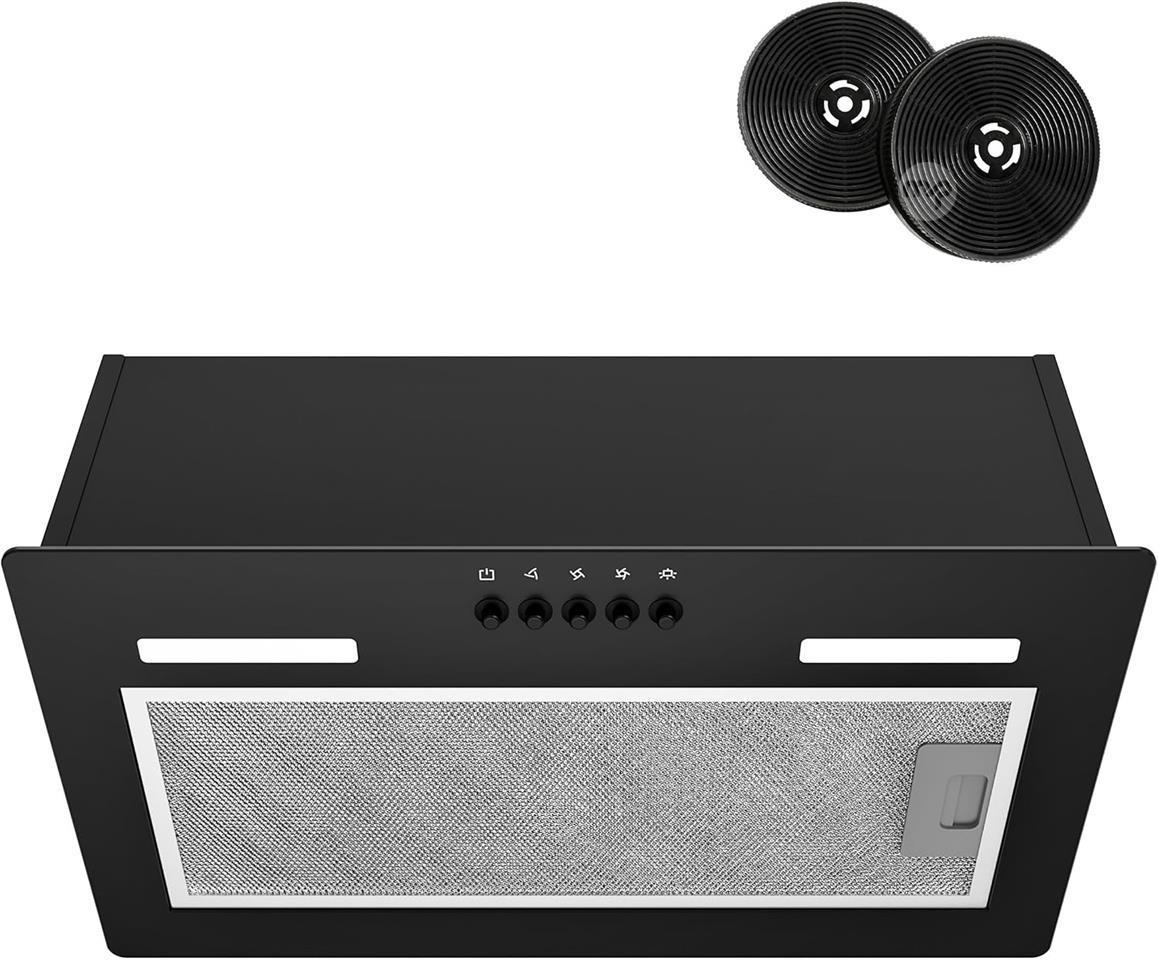 52 cm base hood in black: matte, scratch-resistant design for a high-quality look. Perfectly integrates into standard kitchen cabinets and compatible with all kitchen styles (modern, farmhouse, industrial).