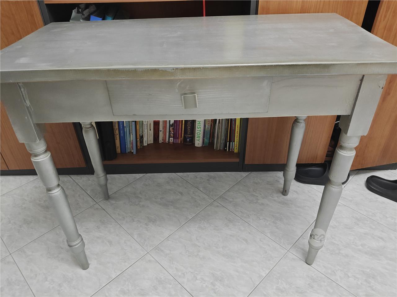 Wooden table varnished in silver measuring 100 x 50x 81cm.