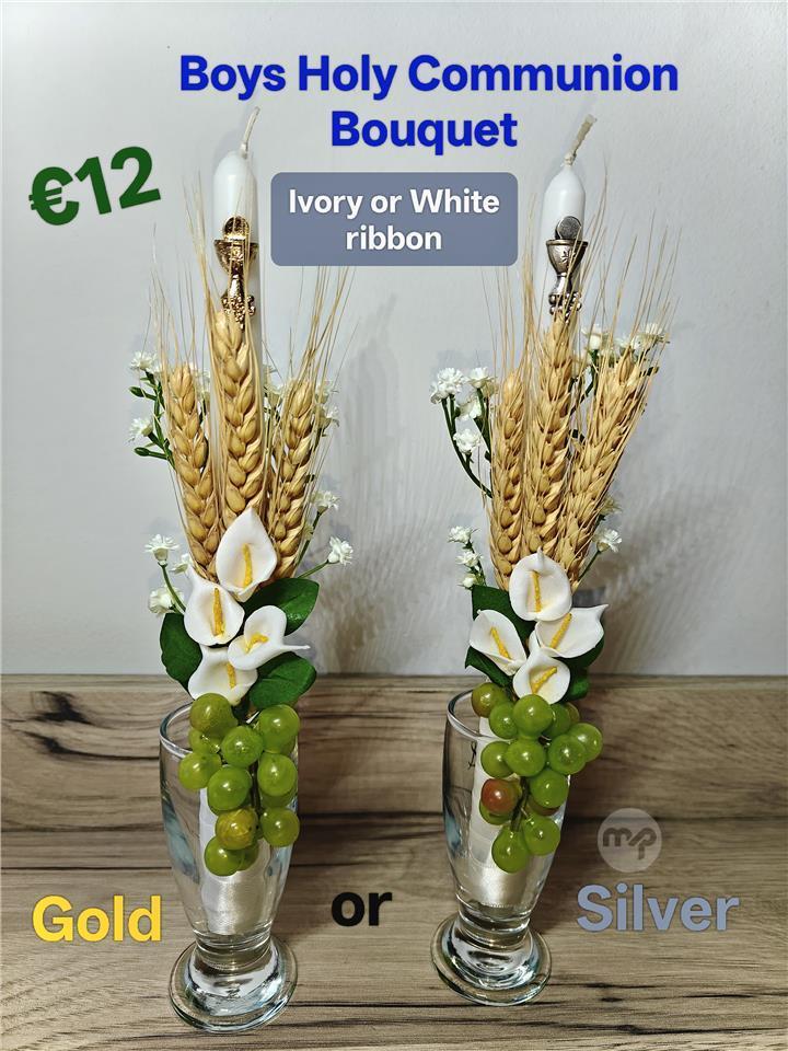 Holy Communion Accessories for boys, white or Ivory ribbon and silver or gold medal.