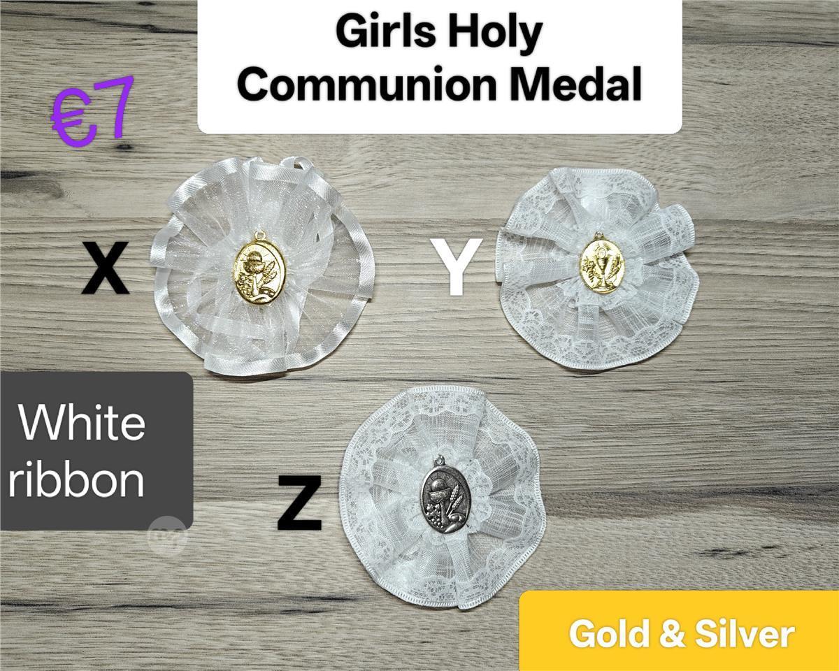 Holy Communion Medals and bag for girls.