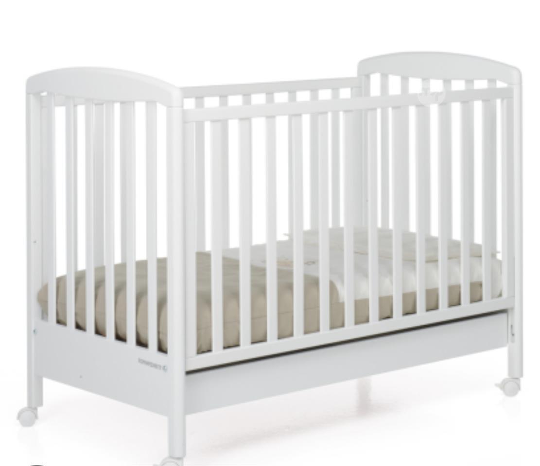 Very good condition Foppapedretti bed, which has a side that can be adjusted to two heights, to facilitate the tidying up of the bed; the side itself can be placed under the bed to transform it into a comfortable sofa. The slatted base is also adjustable at two heights, to allow practical use even when the child is a newborn. The cot has a large lower drawer, divided into two compartments, and scratch-resistant rubberized wheels, with braking system, to facilitate movement.