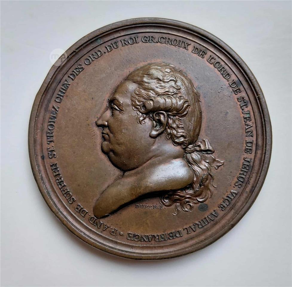 Medal of Pierre Adnre de Suffren, a french naval officer who secured French dominance of the Indian Ocean in the 18th Century. He had also joined the navy of the Knights of St John of Malta, defending galleys from attacks from the enemy.