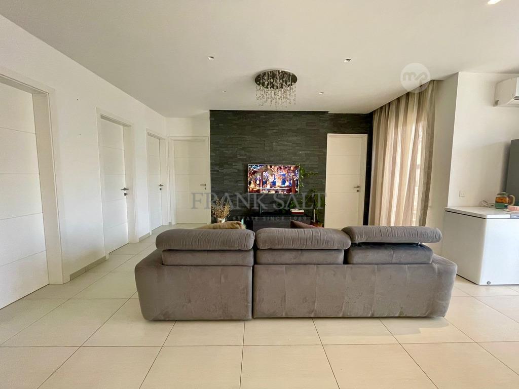 A well-proportioned, squarish-layout second-floor apartment set in the highly sought-after area of Swieqi, just a short walk from all daily amenities. The property features a bright and spacious open-plan kitchen, living and dining area leading onto a front terrace. Accommodation includes three double bedrooms, the main bedroom enjoying en-suite facilities, a main bathroom, and a separate washroom. Further enhancing this excellent home is a spacious one-car garage at semi-basement level with direct interconnecting access.