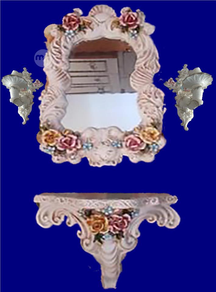CONSOLE WITH MIRROR AND PAIR OF APPLIQUE BASSANO CERAMIC