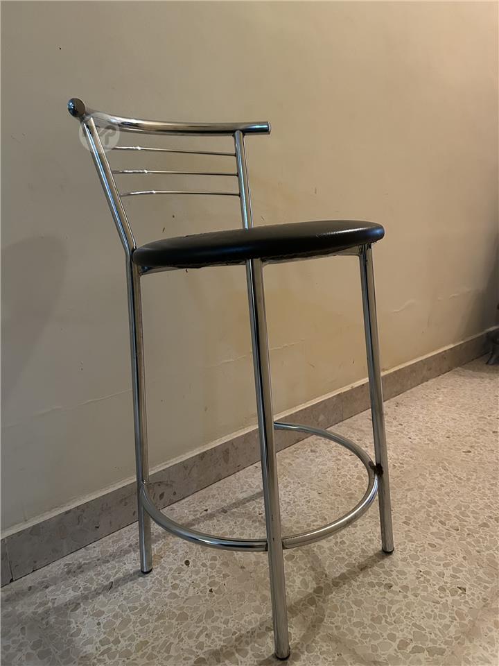 4 kitchen / bar stools at €25 each with a chrome frame and black rexene seats. Upholstery needs redoing. Other than that in good condition.
