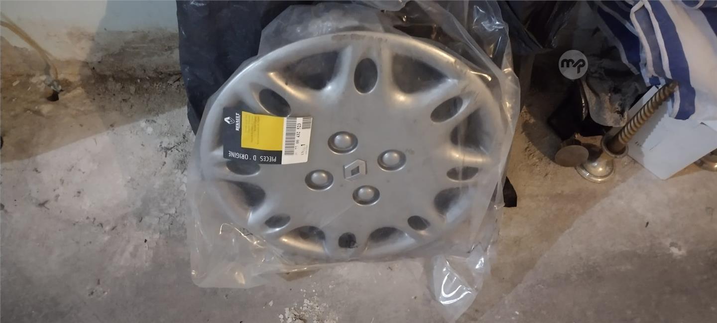 4 original Renault plastic hub caps. These are second hand. There are a few scuffs here and there.