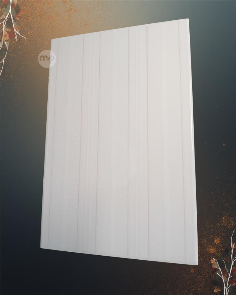 Refined polished porcelain tile with subtle vertical ribbed texture in pure white, adding sophisticated depth and light play. Soft gloss finish for a clean, modern look – perfect for feature walls, bathrooms, kitchens or any space wanting subtle elegance and dimension.