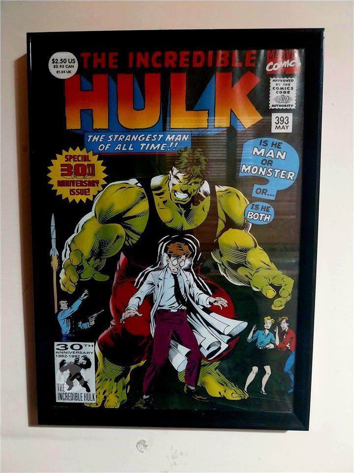 A framed print of the iconic Marvel Incredible Hulk #393 (May 1992) 30th Anniversary cover by artist Dale Keown.