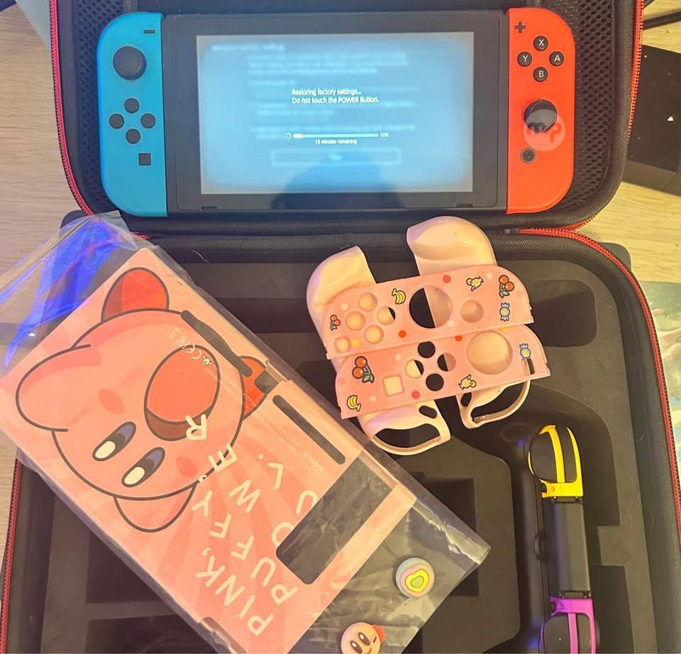Nintendo Switch + Kirby Face Plates + 2 extra controllers