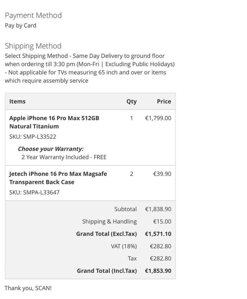 • Model: iPhone 16 Pro Max