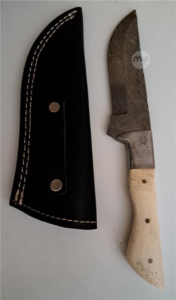 24.5 cm long, blade 12.5 cm, 3 mm thick. Bone handle with leather pocket.