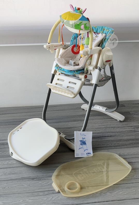 Suitable from newborn, this high chair has 3-position inclining backrest, height adjustable, leg rest height adjustable and a 5-point harness for maximum safety. Including an adjustable tray with removable top liner for easy cleaning, toy bar and owner’s manual. Has 3 seat cushions to replace as child grows up (new-born one is still brand new)