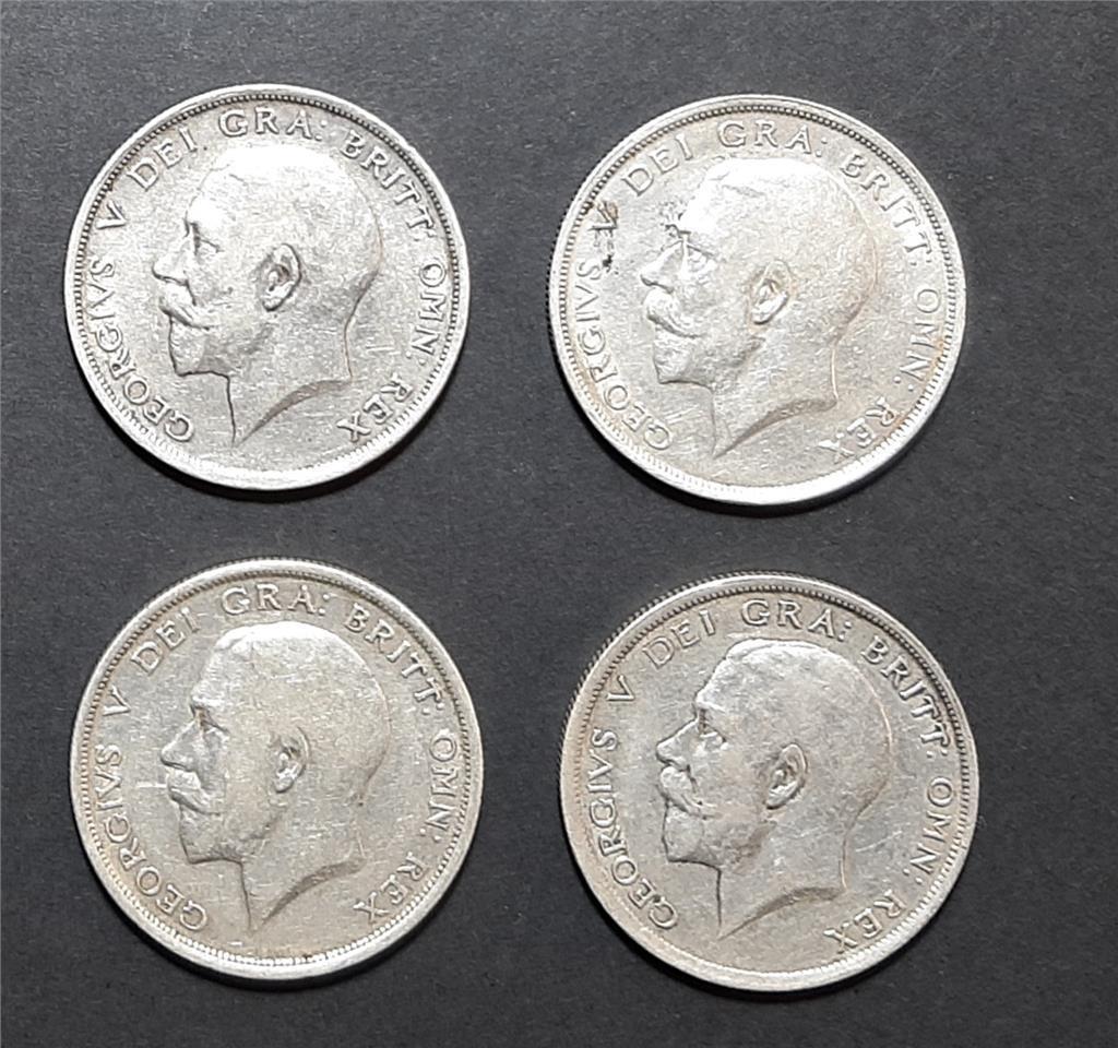 4 GEORGE V STERLING SILVER (925) HALF CROWNS - 56.4grams