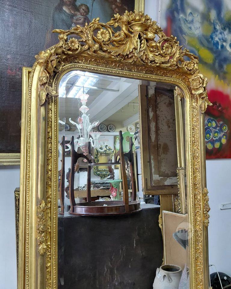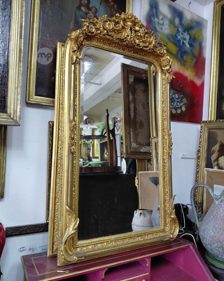 A Victorian style large Gilt frame mirror . Measures 155 x 85 cm Bevelled glass