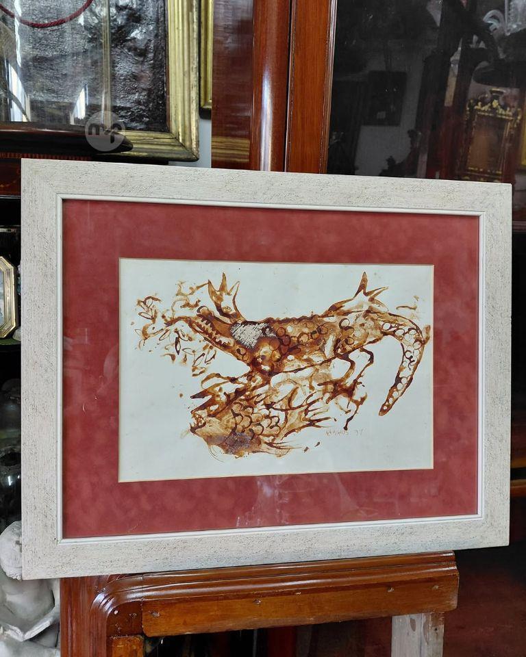 An Abstract painting work (Sanguine on paper) By Maltese Renomate ARTIST Anton