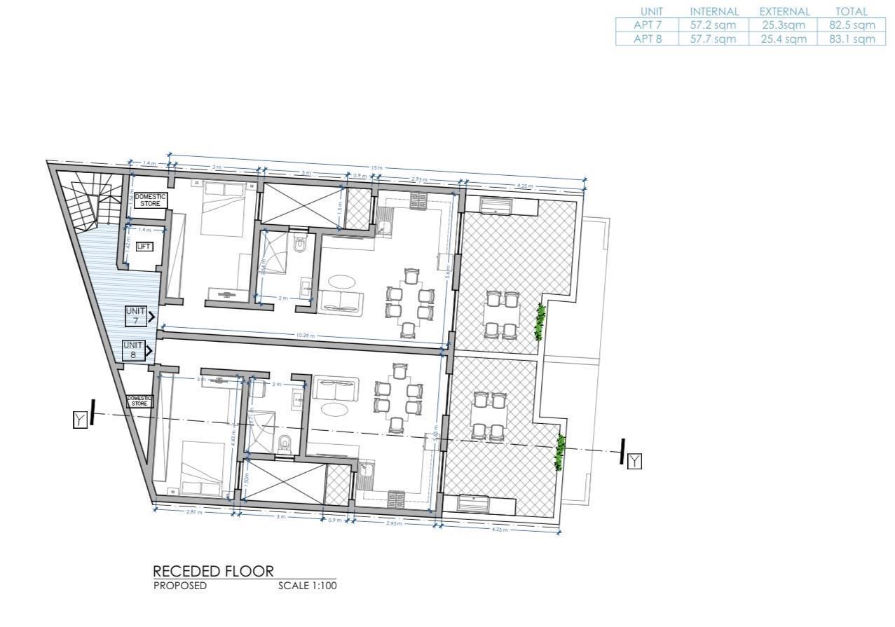 Located on the fourth floor, this penthouse will be offered in shell form, giving buyers the freedom to finish to their own style. The layout comprises an open-plan kitchen/living/dining area, one bedroom, one bathroom, a domestic store, and a large front terrace, ideal for outdoor dining and entertaining.