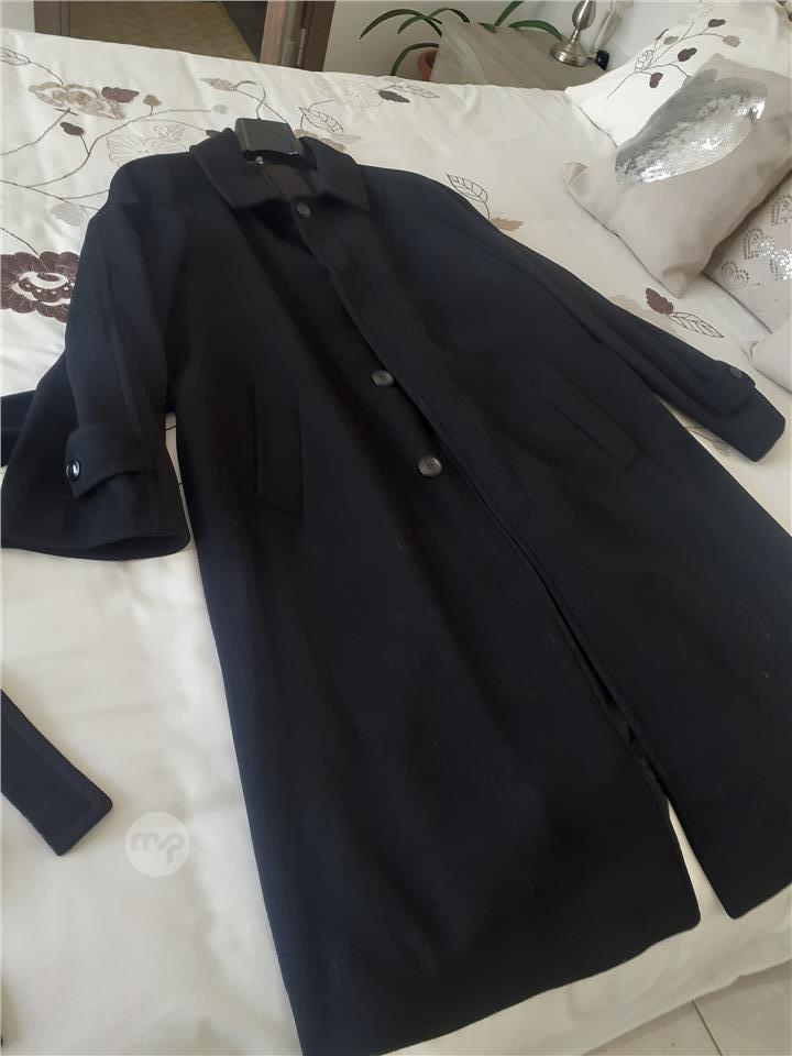 A woollen black coat size medium made in Italy for men.