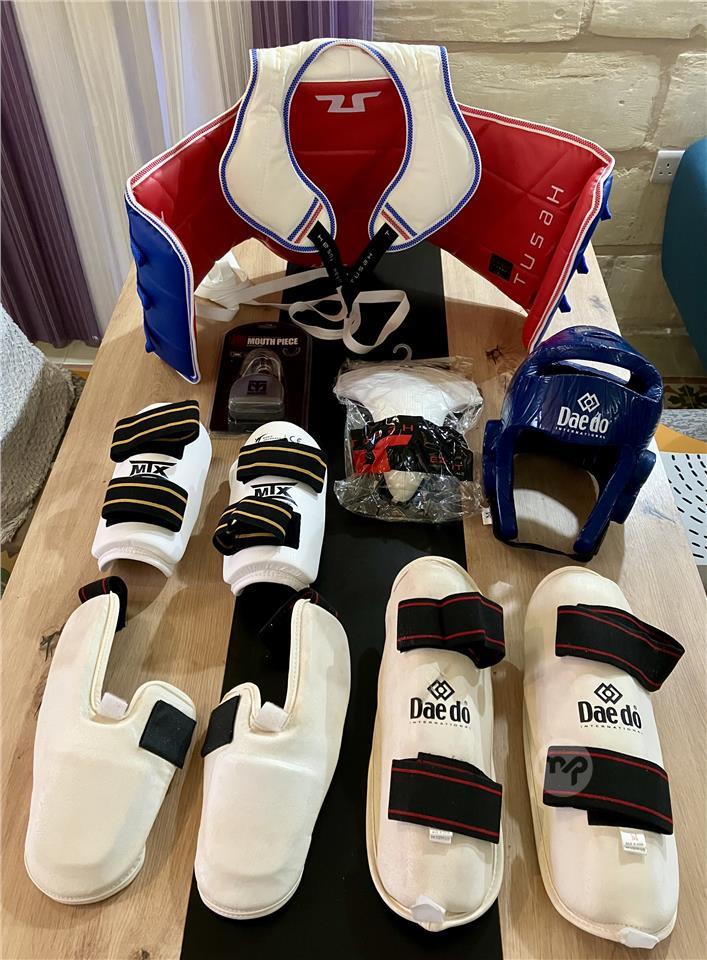 Taekwondo equipment set and uniform for adult male