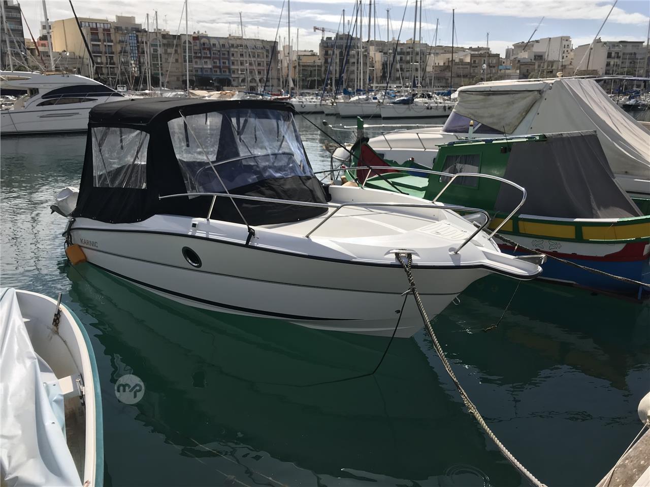 A well kept and maintained, one of a kind Karnic model Sundeck 2052 boat, powered by a Yamaha F150 four stroke 150 horsepower outboard (339 hours) and a Tohatsu 20 horsepower outboard MFS20E with electric starter (199 hours). Both always professionally serviced. Lots of extras, including a 9 inch Simrad NSS Evo 3 fishfinder/Gps, a one kilowatt (high wide) through hull transducer, auto pilot system, electric anchor winch, integrated life bait well, and many more extras. Also included is a galvanized trailer.