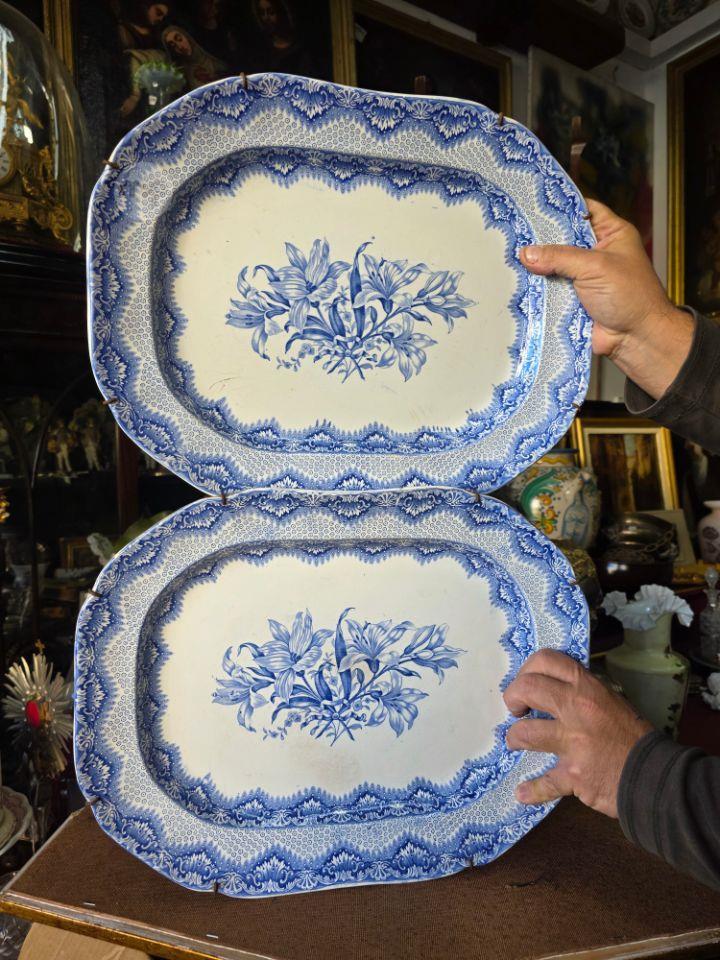 Two Spode blue and white transferware serving platters. Featuring a central flo