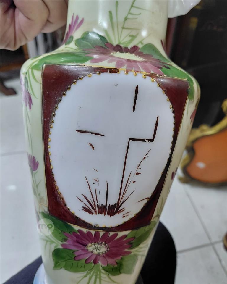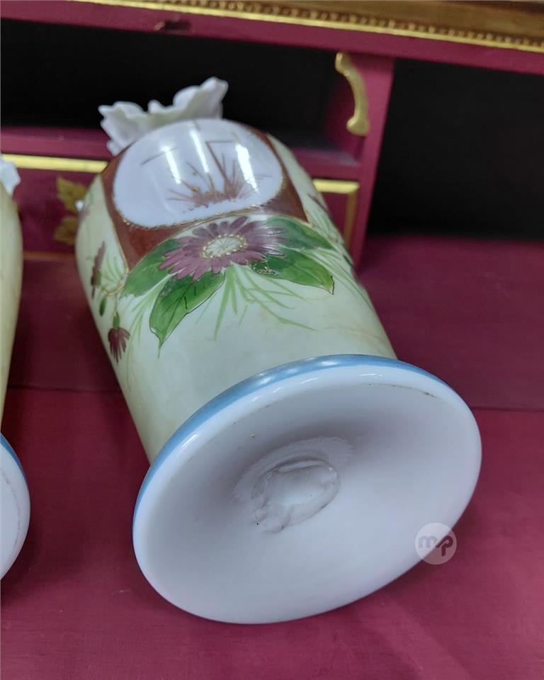 Pair Victorian ruffled rim flower vases with Religious theme Showing the sign of The Cross IN PERFECT CONDITION Measures 33 cm long Price of 185 euros for the pair 99456526
